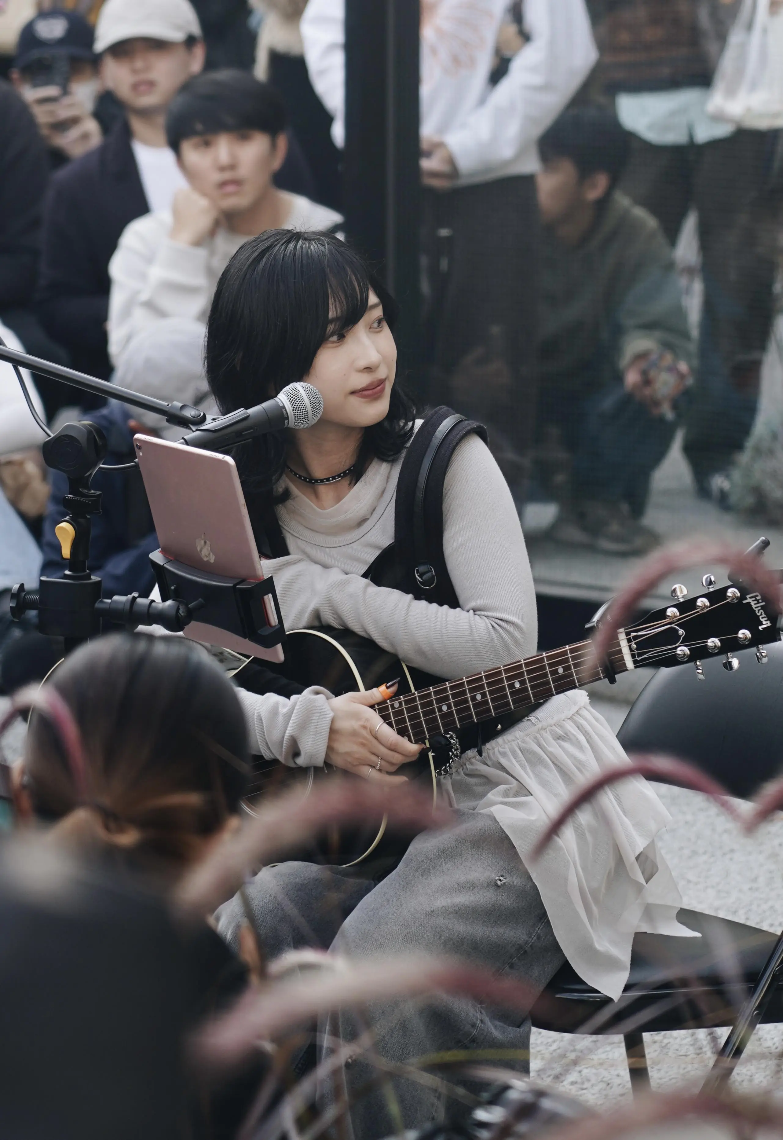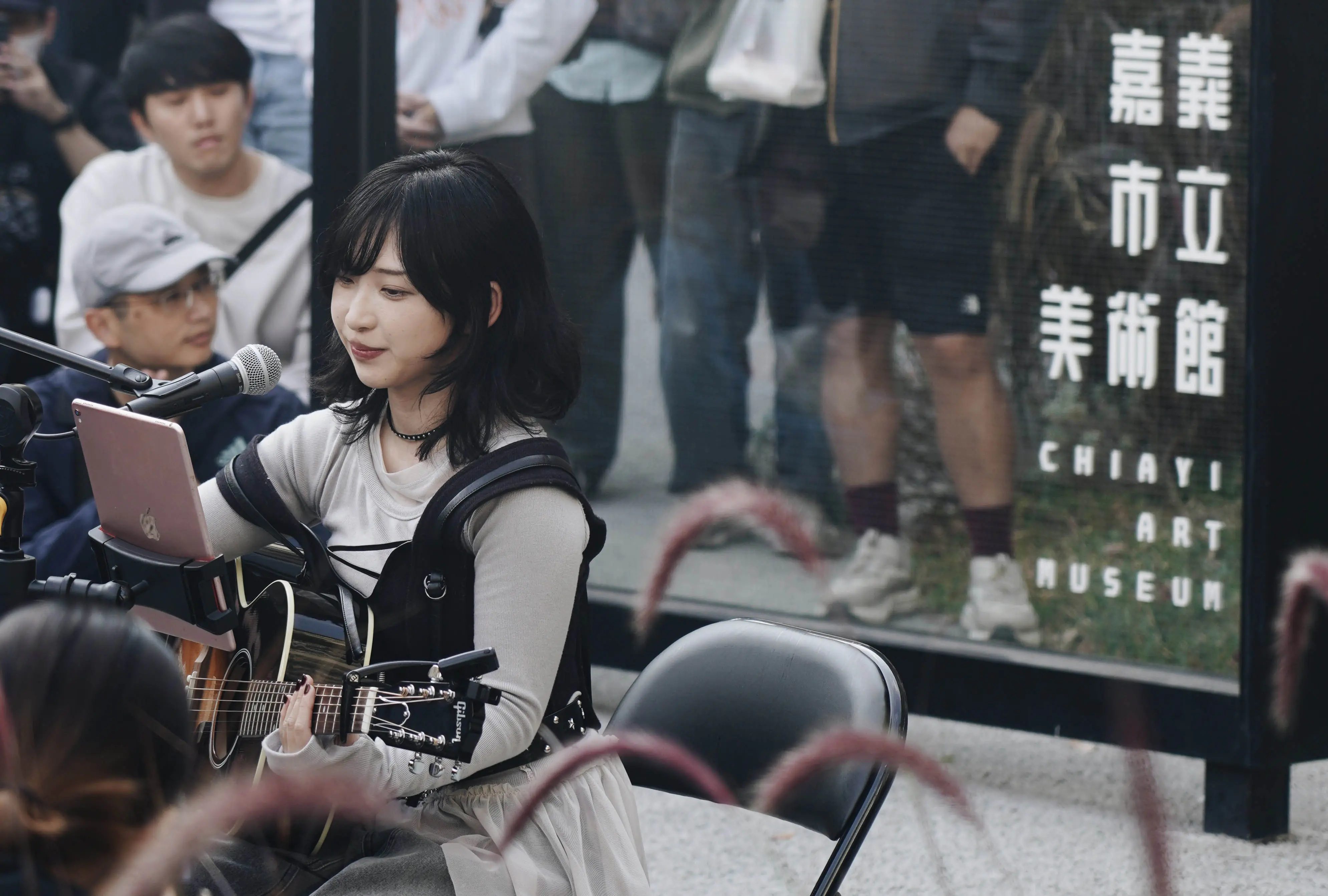 來自京都的搖滾樂團Hakubi,由主唱兼吉他手片桐與貝斯手 Yasukawa Aru組成。樂團於 2021 年主流出道,首張專輯《era》獲得 2022 年 CD 商店大獎肯定,並持續於日本各大音樂節與場館演出。2025 年 Hakubi 亦曾來台舉辦專場,此外,片桐更與嘉義之間有著深厚的連結,甚至他們的歌曲〈何者 / Whoever You Are〉MV是取景於嘉義。 片桐(Hakubi)為祖父嘉義足跡創作、來台拍MV   照片提供:Ms.kuishinbou 農曆年前,片桐也前往嘉義,於嘉義市立美術館前廣場與嘉義市文化公園舉行兩場不插電彈唱。她表示,這次選擇回到嘉義演出,是希望將〈何者 / Whoever You Are〉這首歌,親自唱給台灣的大家聽。 片桐(Hakubi)為祖父嘉義足跡創作、來台拍MV   照片提供:Ms.kuishinbou Hakubi 的作品〈何者 / Whoever You Are〉,源於主唱兼吉他手片桐對家族記憶的追溯。她的祖父曾長期居住於台灣嘉義,這段背景成為創作的重要起點。片桐在實際踏上祖父曾生活過的嘉義後,所看見的城市風景與內心湧現的情緒,逐漸凝聚成這首歌的輪廓。作品在強烈與沉靜之間取得平衡,以透明而克制的聲線展開,如同低聲吟誦的祈禱,越過語言與族群的界線,指向對生命本身的凝視與體會。 片桐(Hakubi)為祖父嘉義足跡創作、來台拍MV   照片提供:Ms.kuishinbou 沿著祖父曾生活過的城市行走,在嘉義所看見的風景與感受到的情緒,逐漸成為〈何者〉的重要來源。歌曲以強而有力卻平靜透明的音色展開,如同一首祈禱之歌;MV亦回值得一提的是,作品同時填寫了日文與中文兩版歌詞。 片桐(Hakubi)為祖父嘉義足跡創作、來台拍MV   照片提供:Ms.kuishinbou 而日前因爲〈何者 / Whoever You Are〉這首歌的緣故,片桐再度回到嘉義,並在嘉義市立美術館前廣場與嘉義市文化公園帶來不插電彈唱,前來聆聽的觀眾人數超出她原本的想像。片桐表示,一開始因語言無法完全溝通而感到些許不安與緊張,但觀眾專注聆聽的神情與溫暖回應,讓她逐漸放下緊張並投入演出。 片桐(Hakubi)為祖父嘉義足跡創作、來台拍MV   照片提供:Ms.kuishinbou 此外,這次在嘉義的期間,片桐也走訪嘉義文化路觀光夜市,並到源魯熟肉、Supiido、阿福果汁等店家,而能夠實際走在祖父曾生活過的城市街道上,與當地人交流,讓這趟旅程不再只是記憶中的片段,而是具體的經驗。 片桐(Hakubi)為祖父嘉義足跡創作、來台拍MV   照片提供:Ms.kuishinbou 對片桐而言,這趟嘉義之行,不僅是一次演出行程,也是一段與家族記憶相連的回訪。她表示,在台灣停留的這段時間裡獲得許多人的協助,讓她能造訪不同地方、遇見不同的人,也讓她更加喜歡台灣,留下珍貴回憶。未來,她希望能用自己的語言,直接向台灣觀眾傳達心意,下次見面時能親口說一聲謝謝。