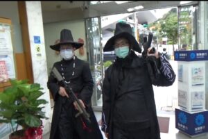 本次演練最大亮點,莫過於歹徒角色的特殊設定,由2名犯嫌裝扮成時下流行的「獵魔女團 Saja boys」進行行搶,融合KPOP韓國流行文化及2025年美國動畫歌舞都市奇幻電影角色元素,造型吸睛,讓現場不少小朋友直呼熟悉,也成功提升民眾對演練的關注度與記憶點。