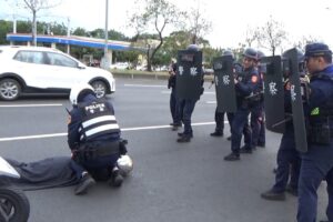 【民眾網編輯方笙楠臺北報導】日前士林區劍潭路一帶出現多名全副武裝警力,吸引不少民眾駐足圍觀,並在社群平台熱議發生何事;原來係士林分局結合轄內金融機構,辦理「加強重要節日安全維護工作」防搶暨攔截圍捕演練,透過模擬真實狀況,強化第一線應變能量。