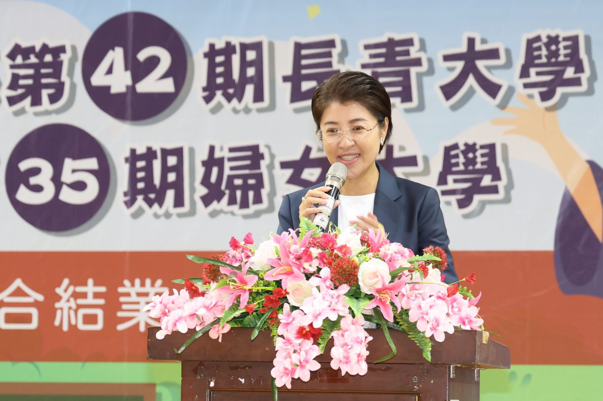 許縣長指出,看到來自各地的學員精神奕奕,感到非常欣慰。她特別感謝13鄉鎮市公所及相關單位的全力協助,讓長青與婦女大學能順利運作,協助縣府落實社會福利,推動性別平權與高齡友善。