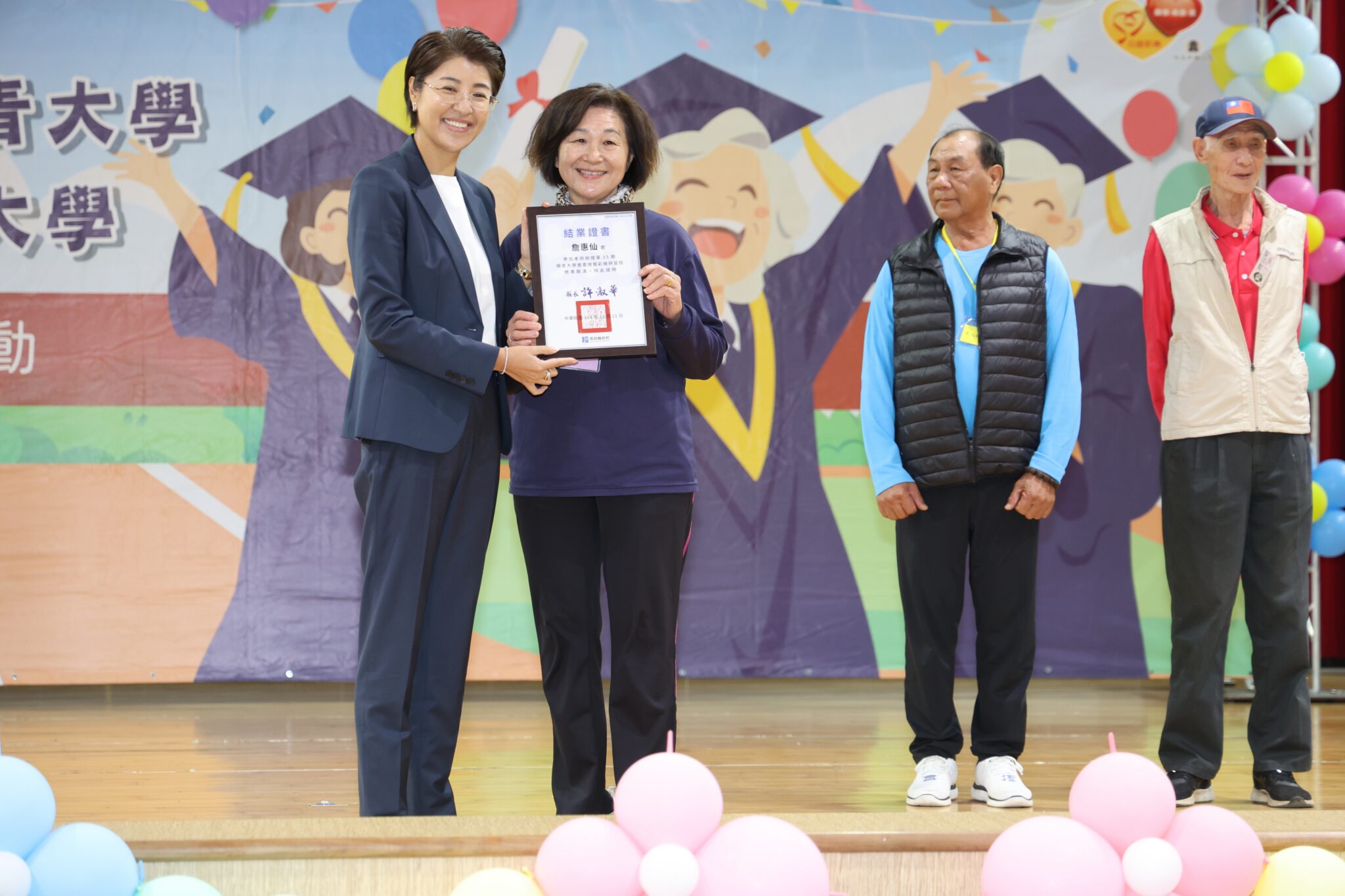 來自全縣13鄉鎮市的600位參加的學員代表齊聚一堂,展現「活到老、學到老」的熱情。許縣長除頒發結業證書肯定學員的勤學精神外,更強調縣府將持續推動「高齡友善城市」與「性別平權」,讓長輩與婦女朋友們擁有更豐富、尊嚴的學習與生活環境。