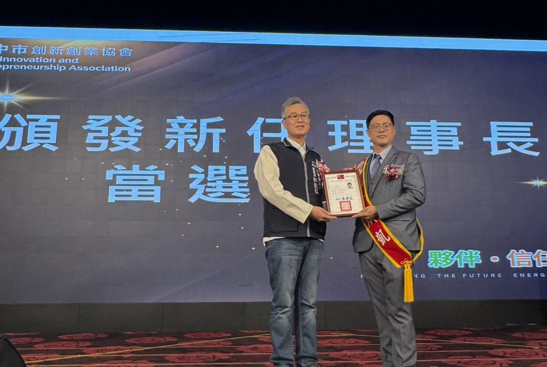 台中市創新創業協會昨(6)日舉辦第28、29屆理事長交接典禮,由現任理事長牛一帆交接予新任理事長徐煥凱。台中市政府經濟發展局副局長林敏棋代表市長盧秀燕出席,並頒發新任理事長當選證書,期許協會結合社團、學界、企業與市府的豐沛資源,為台中創業環境注入實質能量與信心,共創台中經濟繁榮。