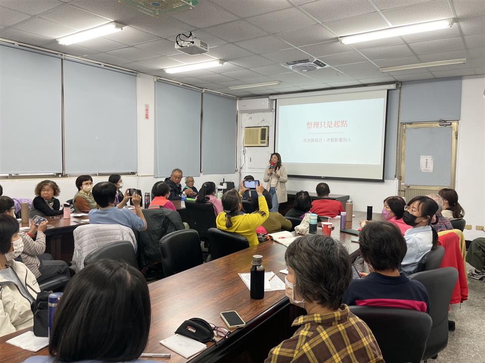 本次課程以「整理四步驟」為核心,包括集中、挑選、分類、歸位等技巧,協助學員從明確設定空間用途開始,逐步檢視物品的重要性與使用頻率,並運用可行的操作模式讓環境維持整潔,讓整理不再流於表面,而是能真正改善日常行為模式。講師也分享常見收納迷思,如囤積不織布袋、重複購買、物品定位不明等問題,讓學員在生活中能以更輕鬆方式維持整齊。同仁與志工們課後皆表示收穫良多,不僅學到整理技巧,也更理解整理與生活品質、服務效率息息相關。
