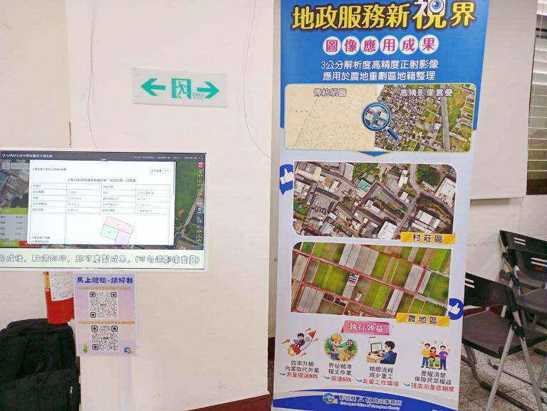 ▲系統結合高精度的正射影像圖及地籍圖,讓民眾在辦理土地分管、土地位置試分割時,可以在真實影像上模擬分割位置,清楚對應房屋、道路與田埂等現地位置,達到「所見即所得」的效果。(圖╱記者孔亮云攝)