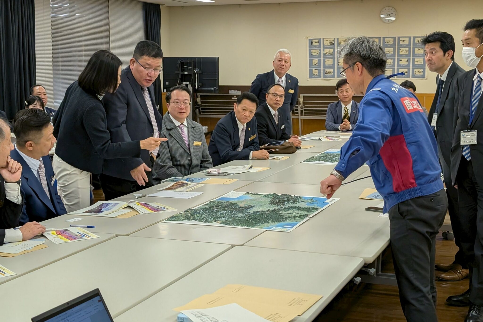 參訪團首先拜會福岡縣大川市役所與大川市議會,就地方自治體在防災政策推動、社區防災組織建構及災害應變等議題進行交流。大川市長江藤義行(えとう よしゆき)對基隆市到訪表達誠摯歡迎,並分享城市治理經驗,說明透過制度化訓練與民眾參與,建立地方政府與社區共同因應災害的運作模式。