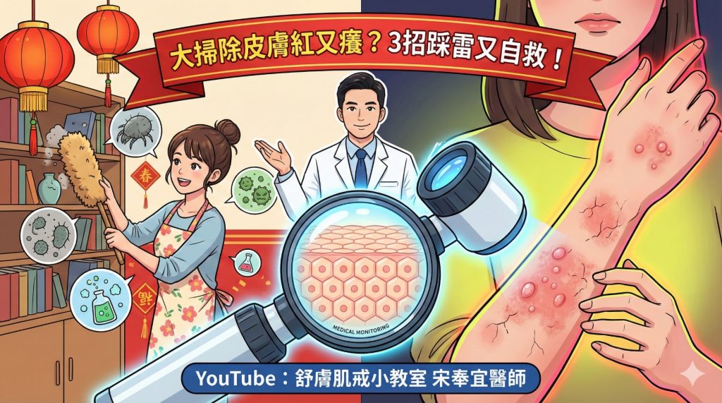 文/宋奉宜 年節忙著「除舊佈新」,別讓健康「亮紅燈」 春節前後,家家戶戶忙著大掃除、採買新衣或返鄉奔波,皮膚接觸灰塵、黴菌與化學清潔劑的機會大增。皮膚科門診中出現紅、癢、腫,甚至起水泡的患者也隨之變多。中華民國美容醫學醫學會常務理事、長期推動皮膚健檢的醫師宋奉宜指出,年前常見的皮膚不適多與「接觸性皮膚炎」相關。越早學會辨識並正確處理,就能避開越抓越嚴重的尷尬。 一、先搞懂:接觸性皮膚炎並不是只有「過敏」 學理上,接觸性皮膚炎主要分成兩類:刺激性:清潔劑等化學物質直接破壞皮膚屏障。過敏性:體內的免疫系統針對特定物質產生反應。 宋奉宜醫師提醒,由於現代人往往有過度保養或潔癖困擾,例如COVID之後的酒精手部濕疹現象。換句話說,近年常見的反而是「累積性刺激性皮膚炎」,也就是原本溫和的清潔劑量,因為短時間密集打掃、反覆清潔,加上冬季乾冷屏障薄弱,導致皮膚撐不住累積刺激,進而出現紅癢且反覆難癒的傷害。 二、3大隱形地雷:你可能就是這樣中招 地雷1:灰塵與黴菌揚塵(皮膚與呼吸道雙重刺激)掃除時揚起的塵蟎體屑與黴菌孢子,容易讓皮膚的暴露部位發紅發癢。萬一吸入呼吸道還會伴隨喉嚨癢、咳嗽甚至氣喘。建議:打掃時務必配戴口罩並穿著長袖,將接觸面積降到最低。地雷2:強效清潔劑、漂白水、去污劑這些強力物質會讓接觸部位出現急性水腫等發炎反應;即便稀釋後弱效卻反覆刷洗,也會導致累積性性的皮膚刺激。建議:一定要戒斷過度清潔的潔癖,同時謹記打掃重點在於「戴手套、減少接觸、用完立刻沖洗」。地雷3:新衣的化學藥劑隱形威脅新衣在製造與染色、儲存的過程中常有染料、藥劑或粉塵殘留;這些殘存物質對敏感肌膚是重大刺激源。建議:新衣務必「先洗再穿」,特別是貼身衣物更要堅持這項紀律。 三、3步驟自救:先阻斷,再修復 Step1:立刻停止接觸+溫涼水沖洗保護永遠先於治療。務必「先斷開」刺激源,再用溫涼水簡單沖洗。清潔時同樣要注意避免熱水與強力去脂,以免屏障更為脆弱。Step2:更換衣物,降低環境殘留將粗糙、緊身、易悶汗的衣物換成柔軟棉質的長袖長褲;打掃時保持通風,只要刺激物不再黏貼皮膚,受傷機率就會大幅下降。Step3:修復重視成分,同時也要重視累積劑量除了選擇無香精、低刺激的潤膚產品之外,謹記保濕的核心是「安全成分」與「適度滲入」。絕對不要追求功能多樣堆疊的絢麗廣告。 四、3大就醫警訊:出現任何一項請盡速就醫 宋奉宜醫師提醒,若出現以下狀況,請交由專業醫師評估,切勿自行塗抹來源不明的藥膏:1.紅腫快速:症狀擴散迅速,甚至伴隨明顯的熱痛感。2.反覆發作:即便症狀輕微,但拖延許久都不退。3.疑似感染:出現明顯水泡、滲液、破皮,甚至伴隨發燒。 結語:預防勝於治療,守住年節健康 自我保護的永恆法則就是「減少接觸、避免搓洗、適度補充、屏障自癒」。宋奉宜醫師提醒民眾,只要記住口罩手套戴到位,打掃後溫和沖洗並單純保濕,就能讓過年只留下乾淨環境與團聚快樂,不再被反覆發炎的紅癢困擾。 投稿人宋奉宜醫師極緻皮膚專科診所 Please enable JavaScript to view the comments powered by Disqus.