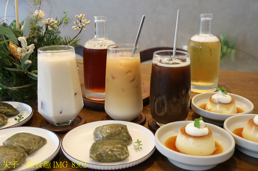 「宅意」提供多款茶點 (甜點)、茶食(鹹食) 選項,當日筆者(夫子) 一行人點了起司蛋糕、焦糖布丁與鼠麴草仔粿。