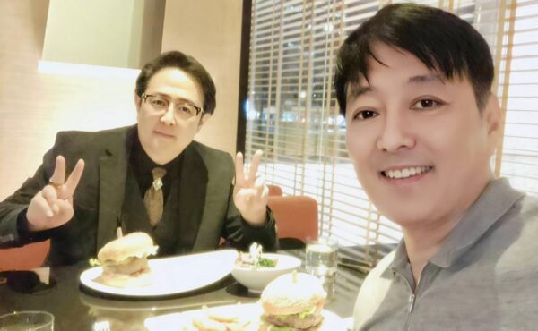 圖:台北市影音公會理事長陳仲祺﹝左﹞與知名演員李志希合影。(圖/影音公會提供)