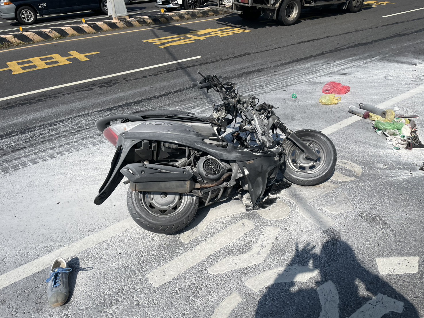 ▲車禍後機車起火燃燒(圖/記者王俊勝翻攝)
