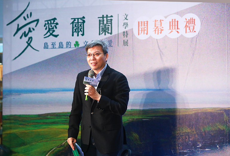 ▲學術策展人謝志賢教授致詞分享愛爾蘭文學的深刻內涵。