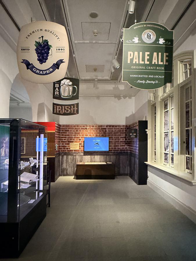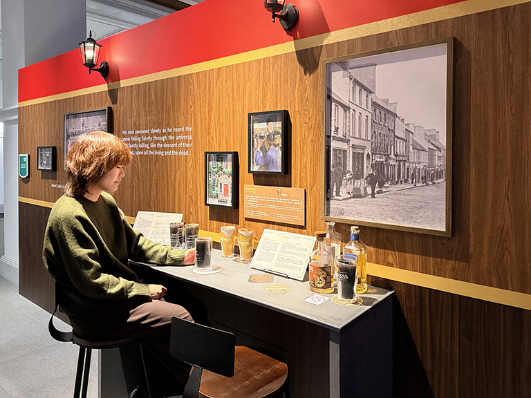 ▲酒吧是愛爾蘭重要文化,觀眾可以透過「酒吧聽故事」互動裝置,了解文學家的趣事。.