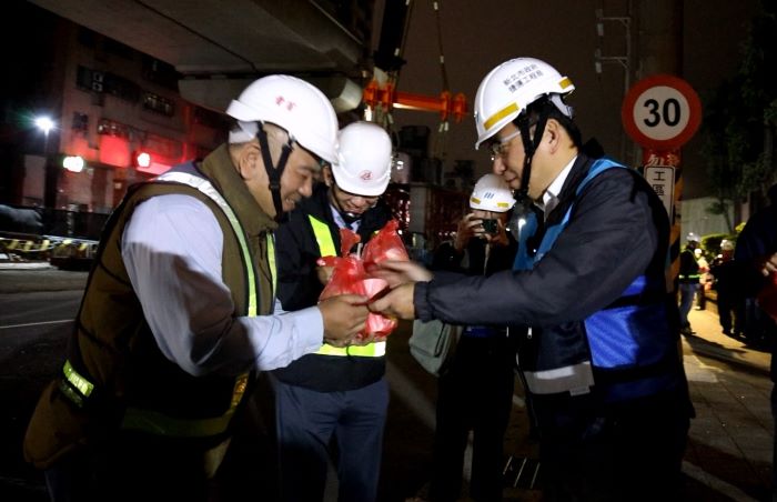 《圖說》捷運局長李政安慰勞施工團隊。〈捷運局提供〉 【記者葉柏成/新北報導】新北市重大交通建設再傳捷報!新北捷運土城樹林線CQ890標(樹林段)工程今(12)日凌晨順利完成首跨預鑄U型梁吊裝作業,長27公尺、重達146噸的巨型梁體,在大型吊車穩健操作下精準就位,象徵工程正式挺進「上部結構」施工階段。捷運局長李政安深夜親赴工區坐鎮指揮,緊盯吊裝流程,並於完工後慰勞通宵作業的施工團隊,感謝工程人員的辛勞與市民的體諒支持。 李政安表示,預鑄U型梁自新莊預鑄梁廠出發,經專車運輸穿越市區道路抵達樹林大安路工區,沿途交通維持與安全管控環環相扣。吊裝作業更是一場精密協作的考驗,需仰賴吊車操作手、現場指揮人員與測量團隊高度默契配合,才能在有限時間內完成高難度定位。首跨預鑄梁成功吊裝,不僅是工程的重要里程碑,也代表土城樹林線建設正式進入上部結構施工期。 《圖說》捷運土樹線進入上部結構施工。〈捷運局提供〉 他指出,為將交通衝擊降至最低,工程單位採夜間施工,自晚間10時封閉部分道路起,至翌日清晨6時前恢復通行,僅有8小時黃金作業時間。期間必須完成風速量測、「一機三證」查驗、吊車設備安全檢查及現場警戒布設等前置程序,確認萬無一失後,才能展開梁體吊掛。李政安指出,吊裝過程分秒必爭,凌晨天色微亮前必須完成復舊與清場,確保市民通勤順暢;單一夜間最多可吊裝6支梁體,每一次升空都象徵捷運建設向前邁進一步。 李政安特別感謝周邊居民,他說,夜間施工難免帶來噪音與交通不便,市府事前加強溝通與公告,並採取減噪措施與分段封路方式,盼將影響降至最低。居民的理解與配合,是工程得以順利推進的重要力量。 《圖說》李政安局長緊盯吊裝情形。〈捷運局提供〉 李政安指出,CQ890標樹林段全長6.6公里,採全線高架設計,規畫8座車站,共需架設202支預鑄U型梁。路線自板橋區溪城路起,行經樹林區中華路、八德街、大安路、中正路,延伸至桃園市龜山區萬壽路一段及新莊區中正路,橫跨新北市板橋、樹林、新莊三區及桃園市龜山區,工程範圍廣泛。期間除需跨越台鐵軌道,亦須穿越高鐵高架橋下方施工,協調與施工難度均高,對結構設計與安全管理都是一大挑戰。 他進一步表示,直線段採預鑄U型梁工法,可縮短工期並提升品質穩定度;轉彎段及長跨距區段則依結構條件採場鑄梁或鋼構梁施作,以確保整體結構安全。目前樹林段基樁工程已完成約40%,墩柱完成約25%,各項工程依計畫穩健推進,目標朝2031年完工通車邁進。 《圖說》土城樹林線第一跨預鑄梁成功吊裝。〈捷運局提供〉 李政安指出,土城樹林線未來完工後,將串聯土城線既有路網,強化新北西南區與桃園龜山地區交通聯繫,提供市民更安全、便捷的通勤選擇。市府表示,將持續嚴守施工安全與品質,兼顧交通維持與環境保護,讓重大建設在穩健中加速推動,為城市發展注入新動能。