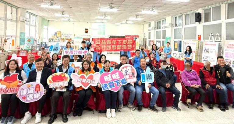 新竹縣政府今年持續與財團法人蔡衍明愛心基金會、中國科大、明新科大、及敏實科大攜手合作「公益青年送愛下鄉趣,2026年新竹縣春節慰問活動」,今(16日)特別在橫山社福中心舉辦頒贈儀式,由社會處長陳欣怡及蔡衍明愛心基金會董事長蔡紹云頒贈感謝狀及旺福紅包,以及敏實科大學務長魏大同代表上台受贈,並邀請5戶受贈代表家戶參與,期盼以實際行動關懷弱勢家庭,提前送上年節祝福。