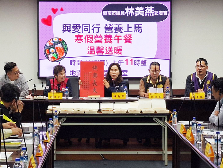 臺南市議員林美燕連續12年攜手愛心團體,合辦「寒暑假弱勢學童免費營養午餐資助計畫」,資助安平、南區弱勢國中小學學生,今年遇到物價上漲等難題,林美燕及時號召慈善團體支援,獲得克服,15日召開記者會,宣布計畫今年續辦,提供18校學童共370份愛心午餐便當,從1月26日起至2月13日,共15天,提醒各校督促申請的學生準時領餐。