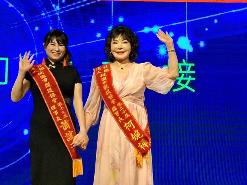 ▲ 新任理事長柯婉樺(右)戴上象徵領導重任的肩帶,象徵服務精神的傳承與延續。
