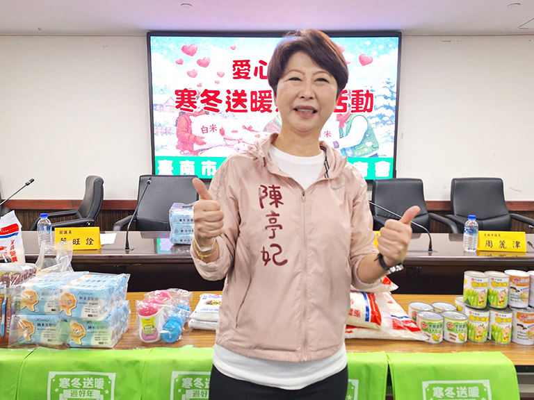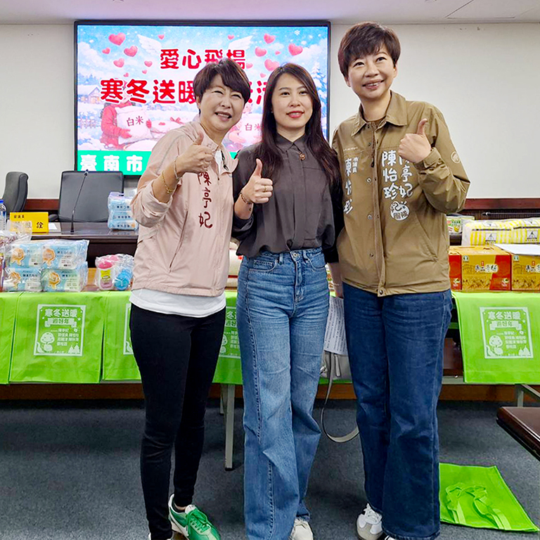 本次活動由陳亭妃委員、郭信良前議長號召,集結市議員陳怡珍、周麗津、吴通龍及蔡旺詮前議員等人共同響應,多年來持續以實際行動關懷弱勢族群,將服務與愛心落實在基層。今日活動記者會中,台南市登陸慈善愛心會理事長楊松榕、肯尼士國際有限公司董事長李耿誠等善心人士亦到場支持,象徵公私協力、齊心行善的溫暖力量。