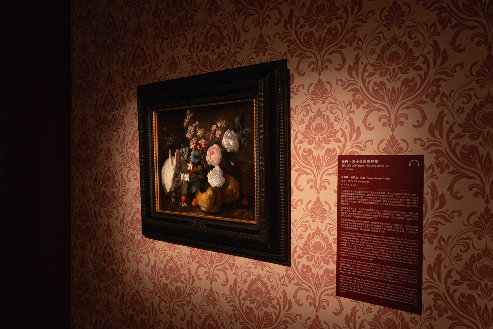 法蘭茲・維爾納・塔姆〈花卉、兔子與果實靜物〉( Still Life with Hare, Flowers, and Fruit )(圖_文 維也納美景宮、時藝多媒體提供)
