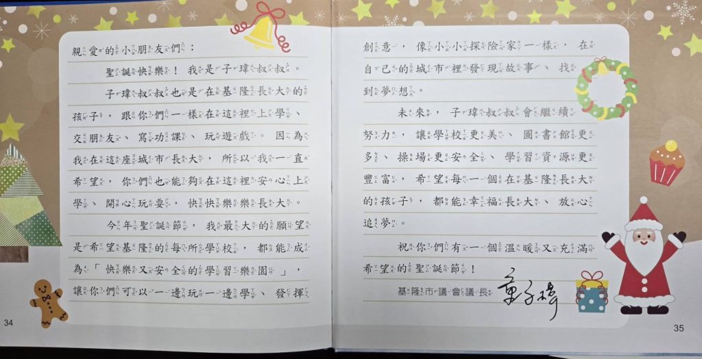 有關近期童子瑋議長以個人名義贈送基隆市國小生每人聖誕繪本至學校,然童議長近期業於媒體公開並宣佈,若年底獲徵召將參選市長,成為準市長候選人。考量學校應遵循教育及行政中立相關法令,市府將婉謝議長本次贈書。