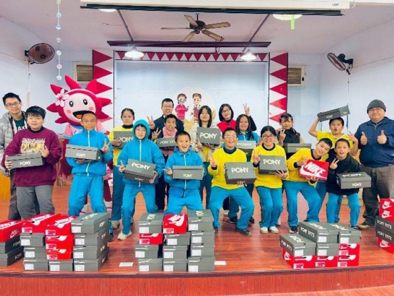 ▲遠百竹北「一募一鞋傳千里」由陳義雄副店長帶領同仁將新鞋送達錦屏國小。(圖/遠百竹北提供)
