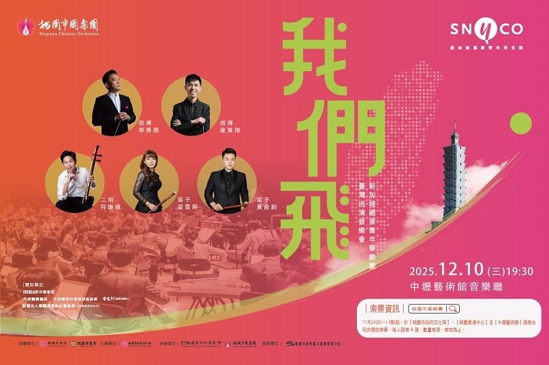 波新聞─陶泰山/桃園桃園市國樂團將於12月10日首次與新加坡國家青年華樂團(SNYCO)攜手合作,展開跨越國際的文化交流音樂會。象徵兩地主流國樂團以音樂相遇,跨越地域差異,共同在桃園舞台上激盪新的國樂能量。這次新加坡國家青年華樂團由多達 88 位青年演奏者隨團來臺,展現龐大而完整的編制,突顯新加坡對此次文化交流的重視與支持。音樂會將由新加坡國家青年華樂團音樂總監郭勇德與桃園市國樂團助理指揮詹秉翔共同指揮,而桃園市國樂團將由二胡符珈瑋、笛子梁雯婷及黃俞鈞等三位優秀的演奏家擔任協奏與新加坡國家青年華樂團交流演出,呈現兩地音樂語彙交織的嶄新視野。新加坡國家青年華樂團臺灣巡演首站將在中壢藝術館登場,音樂會將以臺灣作曲家謝惠如的新作《3,242 公里的聲城事》揭開序幕,以海島文化、潮聲意象與雙城記憶串起臺新之間的聲音對話。緊接由符珈瑋擔任獨奏演出馮國峻所創作的《渡》二胡協奏曲,以濃烈的情緒層次描繪逆境與希望;趙俊毅《明日之城》結合錄音與科技互動,呈現充滿城市感的新加坡日常聲景;而王辰威的《笛緣》則由梁雯婷與黃俞鈞雙笛合演,展現靈巧的音色交織;姜瑩《絲綢之路》以多元節奏開拓聽覺視野;王丹紅《太陽頌》則以民間旋律描繪土地的生命張力,多元精采曲風目不暇給。新加坡國家青年華樂團是新加坡最具代表性的新生代華樂團隊之一,長年致力於推動青年音樂人才的扎實培育,在新加坡各大演出場合屢獲好評,並以活力、細膩與極具舞台張力的演出風格展現樂團規模與實力。雙方首次攜手,不僅在曲目上展現創作的多樣性,也在演奏風格與音樂層次上得到啟發,使演出文化交流更顯意義。音樂會演出資訊:114年12月10日晚間7:30於中壢藝術館音樂廳演出,索票資訊即日起上午9點開放索票,地點包含【桃園市政府文化局】、【桃園展演中心】及【中壢藝術館】服務台。數量有限,歡迎喜愛音樂的民眾踴躍索取,一同踏上這段從新加坡到臺灣的聲音旅程。查詢更多活動詳情請洽:桃園市國樂團官方粉絲專頁 https://www.facebook.com/TaoyuanChineseOrchestra桃園市國樂團官網 http://tyuco.taoyuancf.org.tw