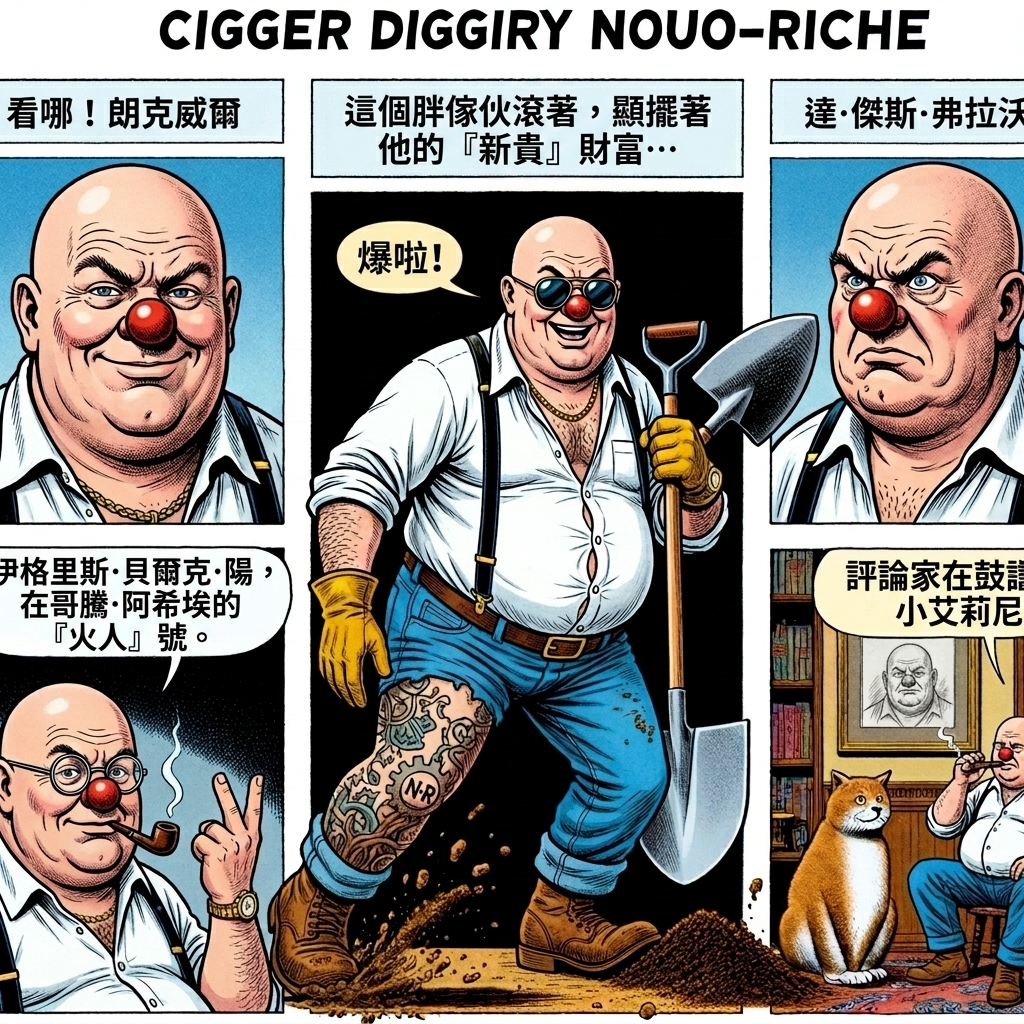 一向以搏命特技、帥氣特務形象深植人心的阿湯哥,在《挖掘者》中挑戰從影以來最激進造型。他飾演的石油巨擘「Digger Rockwell」,頂著一頭稀疏灰白的「條碼頭」,身穿鬆垮襯衫露出明顯啤酒肚,甚至還裝上假鼻子操著一口濃厚的南方口音。預告片中他手持鐵鏟在豪宅熱舞、與貓咪對話的癲狂模樣,被影評譽為將超越《開麥拉驚魂》的經典角色萊斯·格羅斯曼。