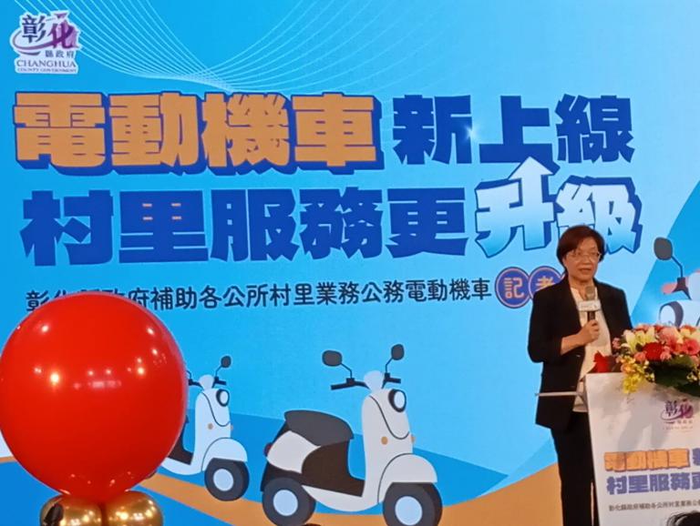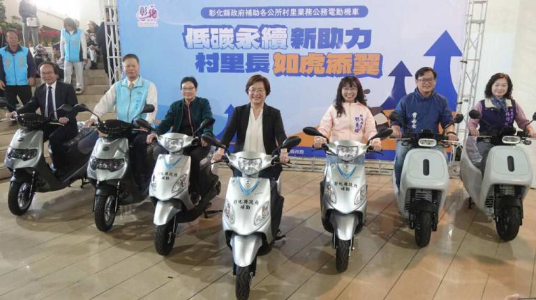 彰化縣政府為提升村里服務效能,同時落實環境永續與淨零碳排目標,29日舉辦「電動機車新上線、村里服務更升級-彰化縣政府補助各公所村里業務公務電動機車記者會」,縣長王惠美感謝議會對經費的支持,縣府推動各鄉鎮市公所電動機車補助計畫,公所可依地方特性及需求,採購村里業務公務電動機車,全縣共591村里,每輛補助上限6萬2,000元,總經費3,664萬2,000元,將低碳交通落實於各村里的公共服務。