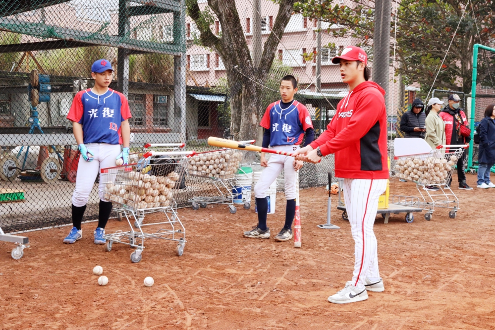 身為光復國中畢業校友的味全龍投手吳俊杰,在災情發生當下便第一時間趕回家鄉,加入「鏟子超人」志工行列清淤。再次踏入母校,他感性說到:「今天能跟著基金會一起把全新交通車送回母校心情很激動也很溫暖。我想讓學弟知道,不論遇到多大的困難,學長及大家都會陪著你們重新再來。」捐贈儀式後,吳俊杰與曾聖安與小學弟們進行棒球技術交流,透過分享與指導,希望小球員們帶著學長的支持讓這份夢想繼續傳承下去。