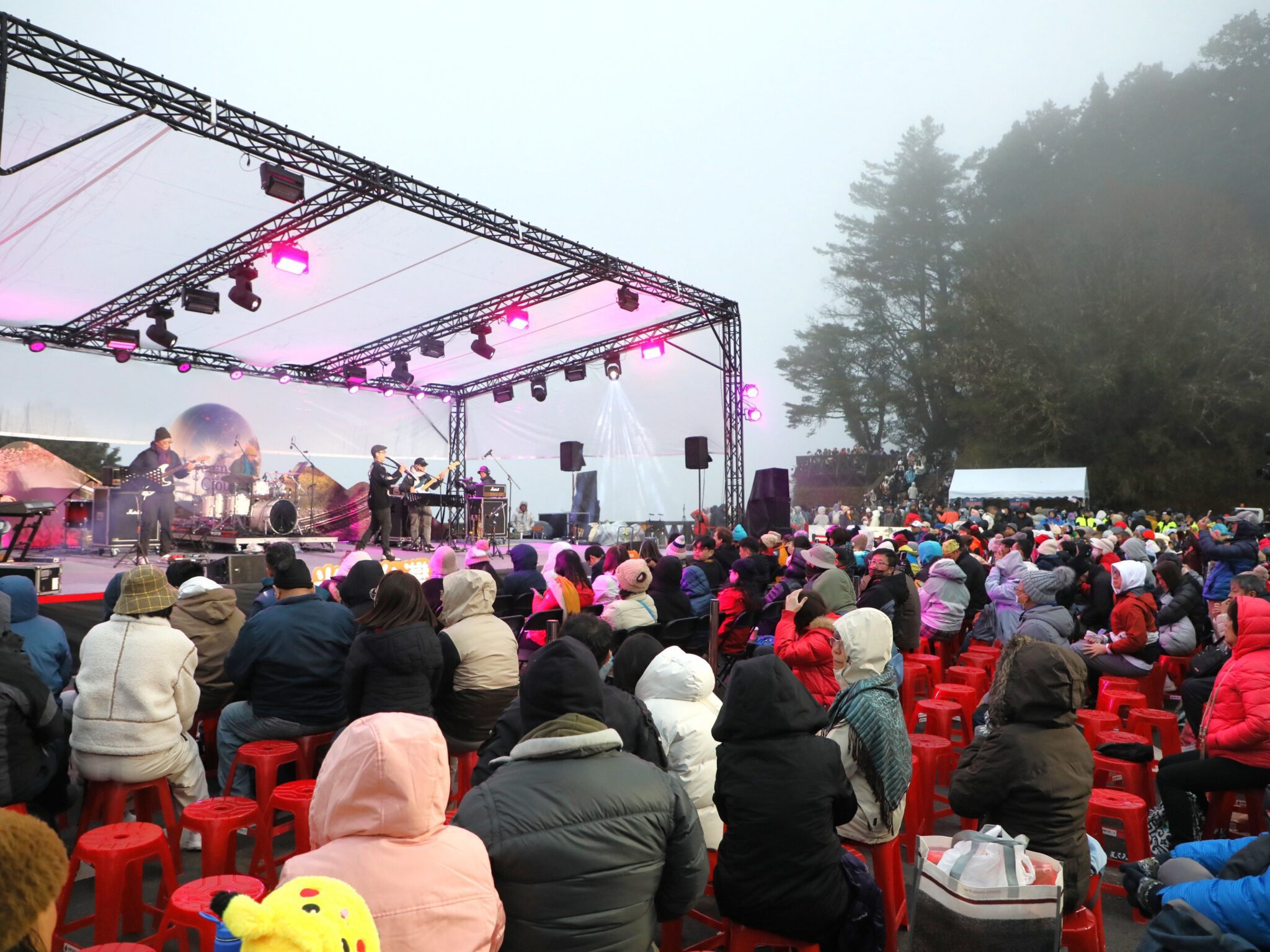 「阿里山日出印象音樂會」已邁入第24年,吸引眾多海內外遊客在跨年後驅車前來,並搭乘森林鐵路小火車前往祝山觀日平台,準備迎接全新的一年。音樂會陣容相當強大,董事長樂團、Skyline天際線融合爵士樂團及樂興之時管絃樂團輪番上陣,陪伴遊客在寧靜的黑夜中等待元旦曙光。