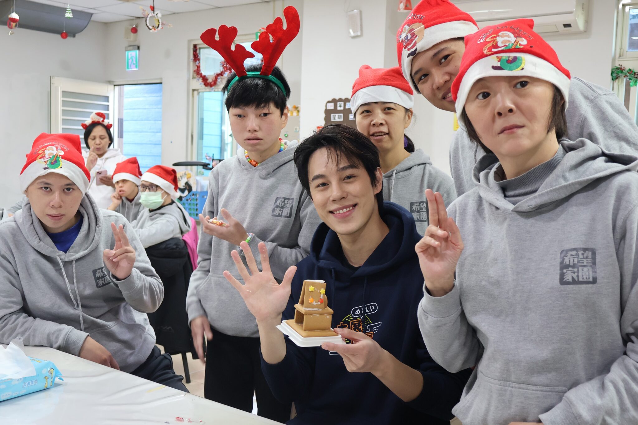 除了用音樂互動,MAI孫麥傑更與憨兒們組隊一起動手製作薑餅屋,從拼裝到裝飾全程耐心陪伴的過程笑聲不斷,孫麥傑更從中感受到與憨兒共處時的暖心問候,「在做薑餅屋的時候,有一位憨兒主動關心我有沒有吃早餐,那個眼神很純粹,也感受到他的溫暖,反倒療癒了我的心靈。」除此之外,熱心做公益的MAI孫麥傑還貼心準備披薩與憨兒們開起美食派對,並穿上基金會推廣的公益年菜 T 與孩子們同樂,原本準備捐出五萬元加菜金的他,在得知基金會同時推動「送愛到偏鄉」關懷物資箱計畫後深受感動,現場還將捐款提高至十萬元,希望在歲末為憨兒與弱勢家庭送上一份實質支持,也盼拋磚引玉,邀請更多人一同響應,為這場溫馨的聖誕活動增添更加暖意及愛心的同時,真善美社會福利基金會更以贈與感謝狀答謝孫麥傑以實際行動為憨兒們帶來溫暖且不一樣的聖誕節,讓愛與幸福在節日中持續傳遞。