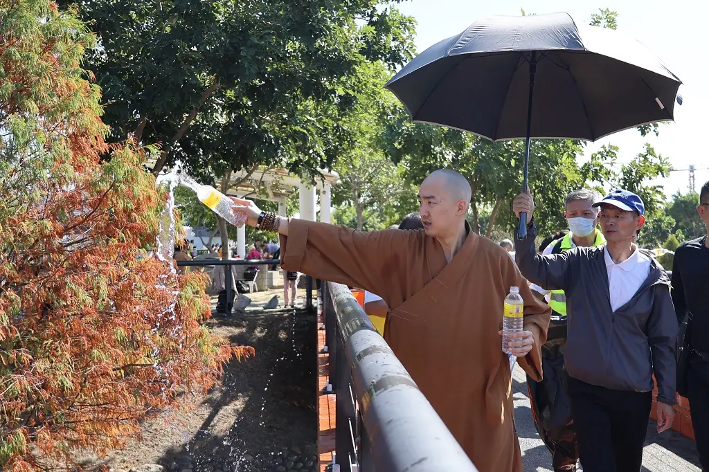 功德山於11/16日,在台中高鐵新市鎮生態公園舉行「功德山大悲咒水遍灑祈福活動」,由 上宏下法 法師帶領大眾恭誦〈大悲咒〉,並以加持後的大悲咒水遍灑全區,祈願國泰民安、社會祥和,引導更多人以佛法淨化身心,將光明與善念散播至社會每個角落。