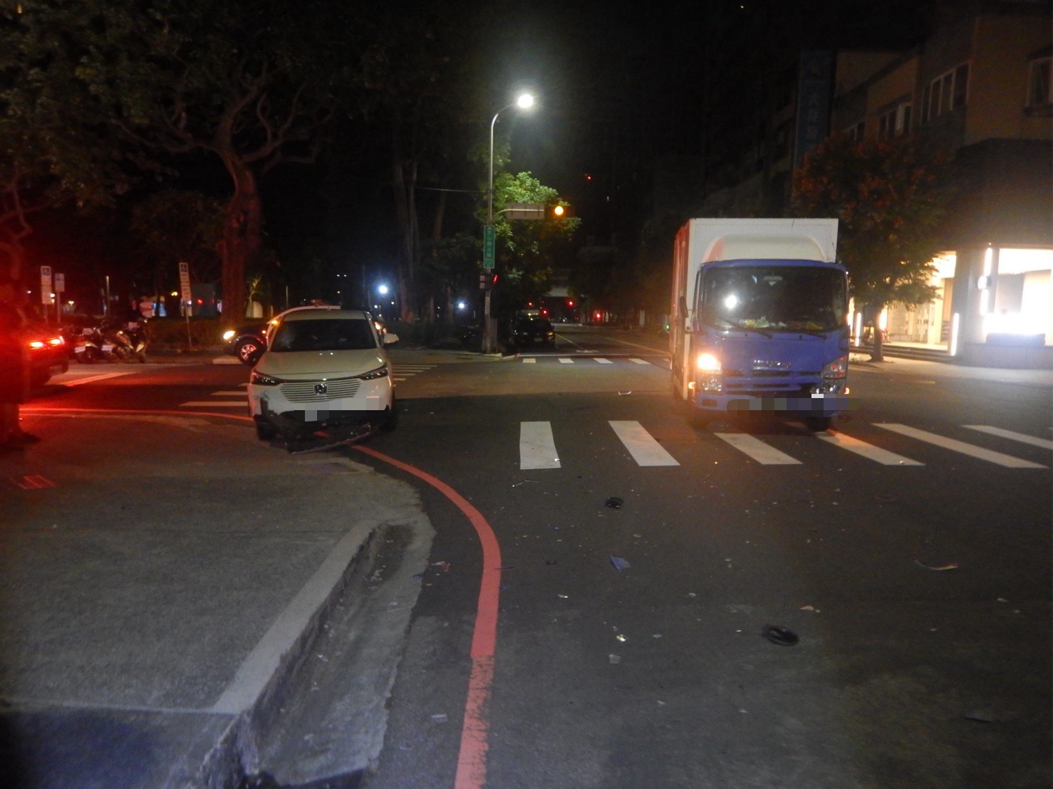 警方調查,今日4時14分,陳姓男子(35歲) 駕自小客車沿豐富路(閃光紅燈)往文心南五路往南方向行駛,蔣姓男子(25歲)駕駛小貨車沿文心南三路(閃光黃燈)往大墩南路往東方向行駛,兩車於文心南三路與豐富路口相撞,造成自小客車乘客林姓男子(25歲)手部受傷、乘客顏姓女子(26歲)臉部受傷送中山醫院治療。兩車駕駛均未酒駕。
