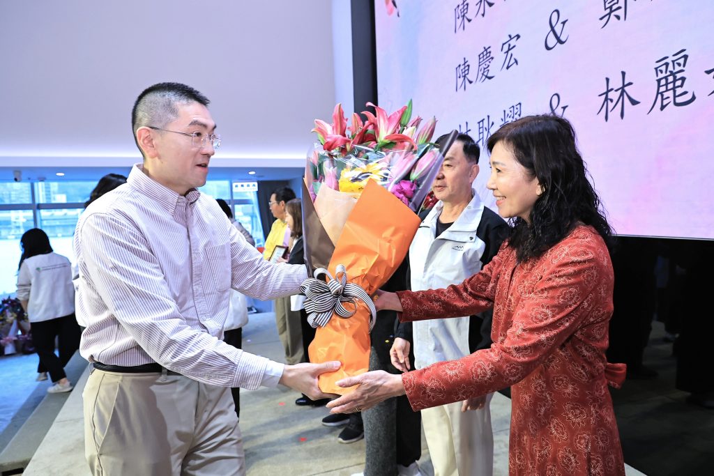 活動現場氣氛溫馨熱絡,謝國樑除表揚服務滿20年以上、25年以上的寄養家庭,並且感謝退休寄養家庭長期奉獻,也特別逐桌向大家敬酒、親切互動,關心大家的生活與學習情況,溫暖的交流讓整場餐敘更加增添團圓與陪伴的氛圍。