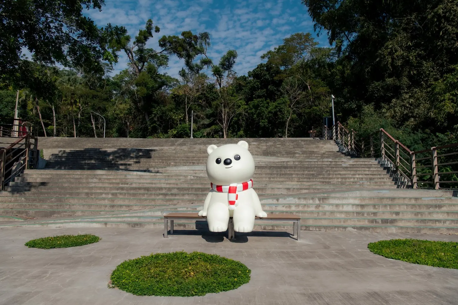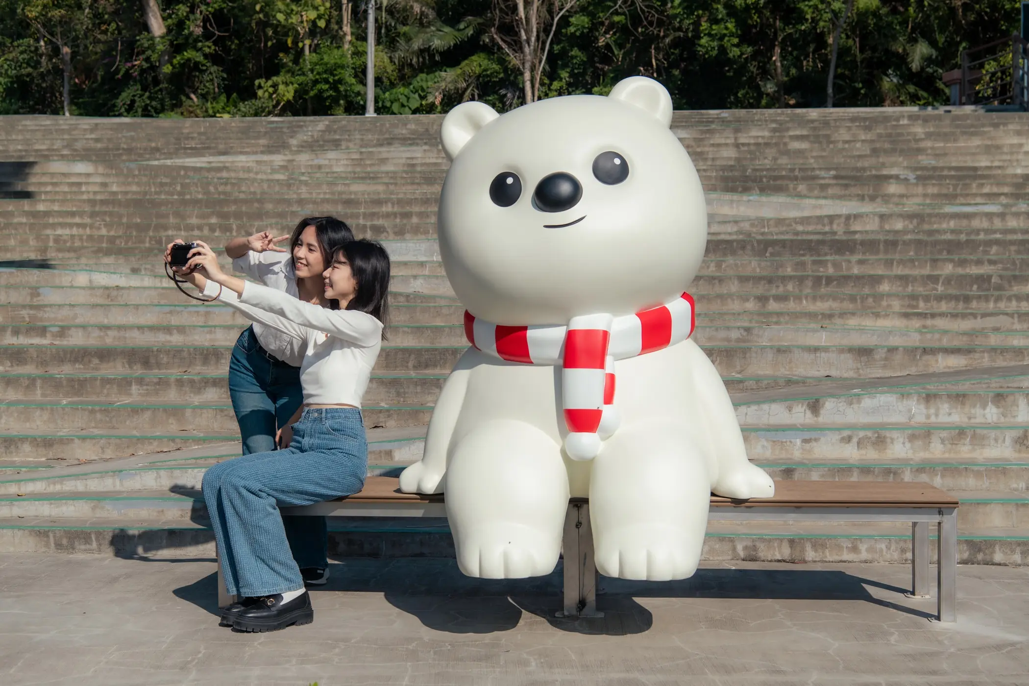 嘉義市政府觀光新聞處處長張婉芬表示,大白熊以「溫暖陪伴」為核心意象,已逐漸成為嘉義市觀光的代表形象,設置於蘭潭姊妹亭的大白熊,不僅是一件可愛的裝置藝術,更是將嘉義市的生活節奏與城市情感轉化為具體風景的作品。大白熊靜靜坐在湖畔長椅上,雙腳自然垂放、身體微微前傾,坐姿輕鬆親切,正如嘉義市溫柔、不張揚的城市氣質,願意把最美好的風景分享給來訪旅人。