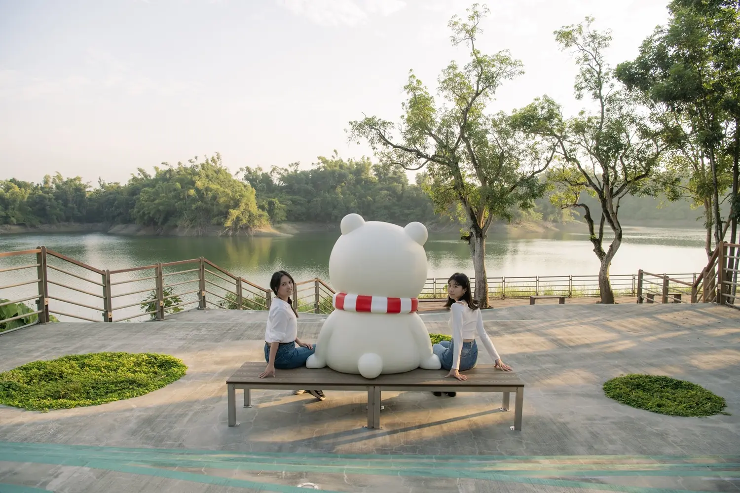 張婉芬指出,從側面欣賞,大白熊彷彿凝望著蘭潭湖光山色;從正面看,則像對著鏡頭微笑,邀請民眾坐在身旁,一同看湖、看山,拍下專屬於自己的蘭潭回憶。
