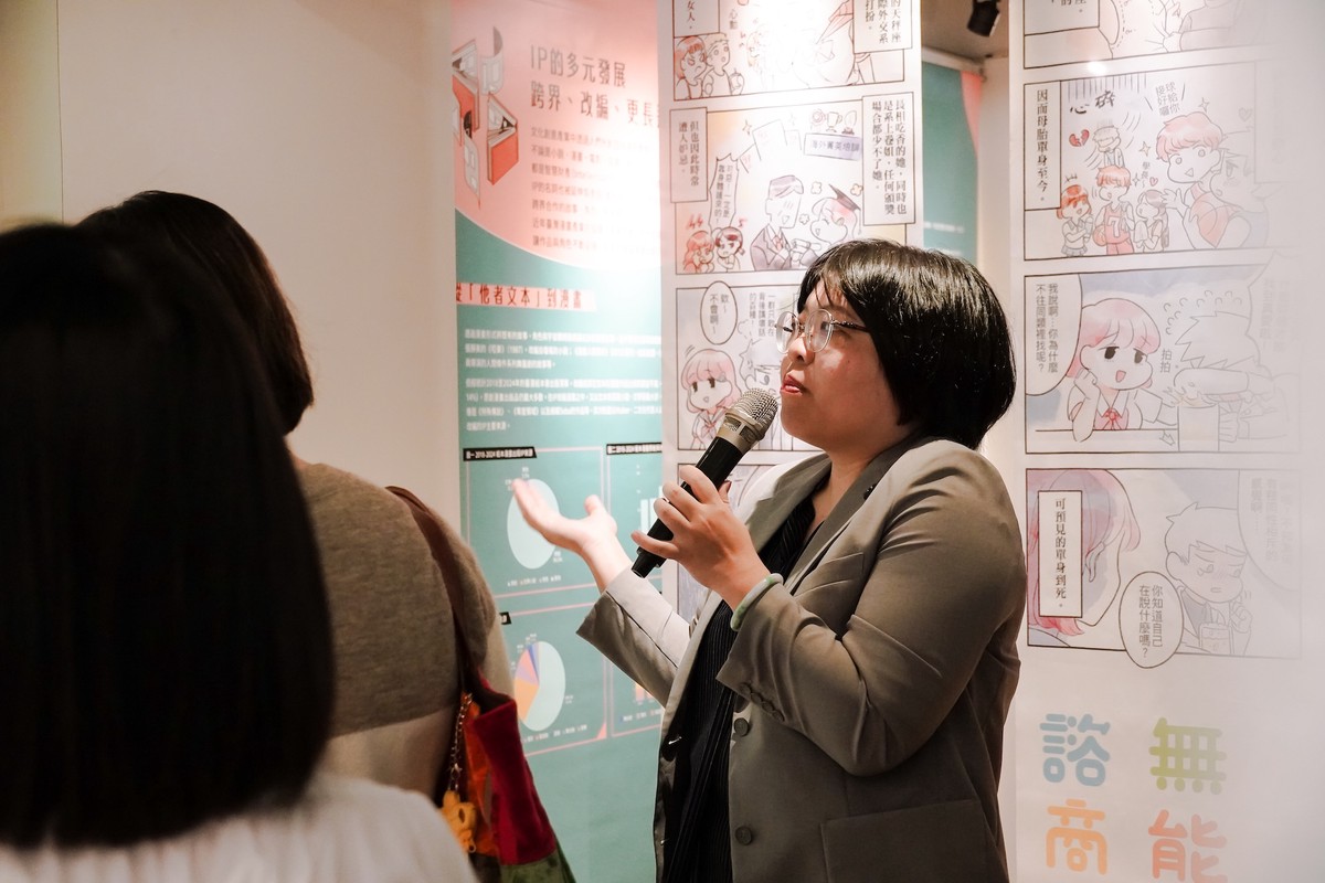 策展人賴萱珮進行導覽解說。圖/臺灣漫畫基地提供